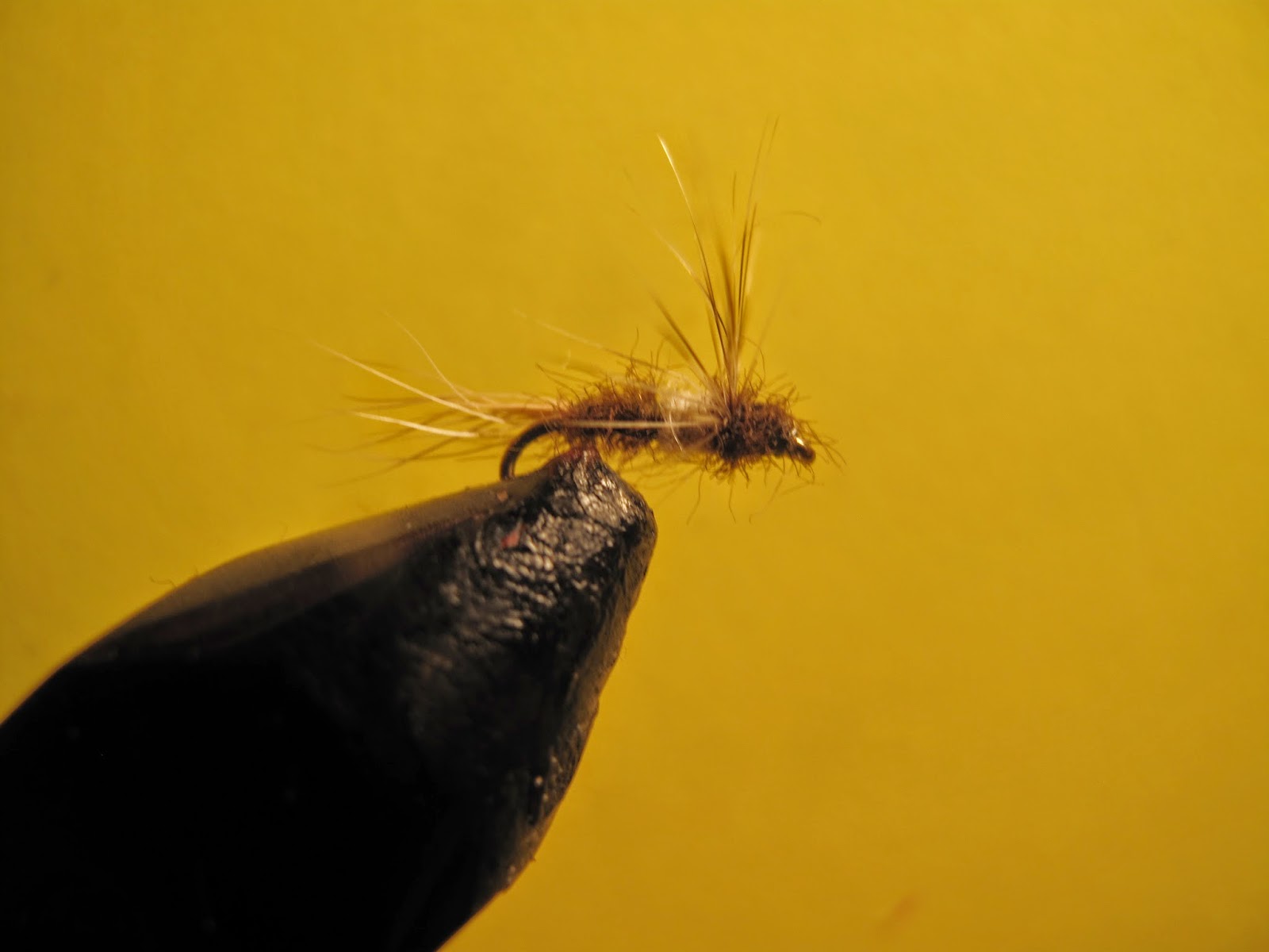 The hackle in this one is sort of folded, which is why it looks like a comparadun. The hackle should be long and wrap all the way around the hook.