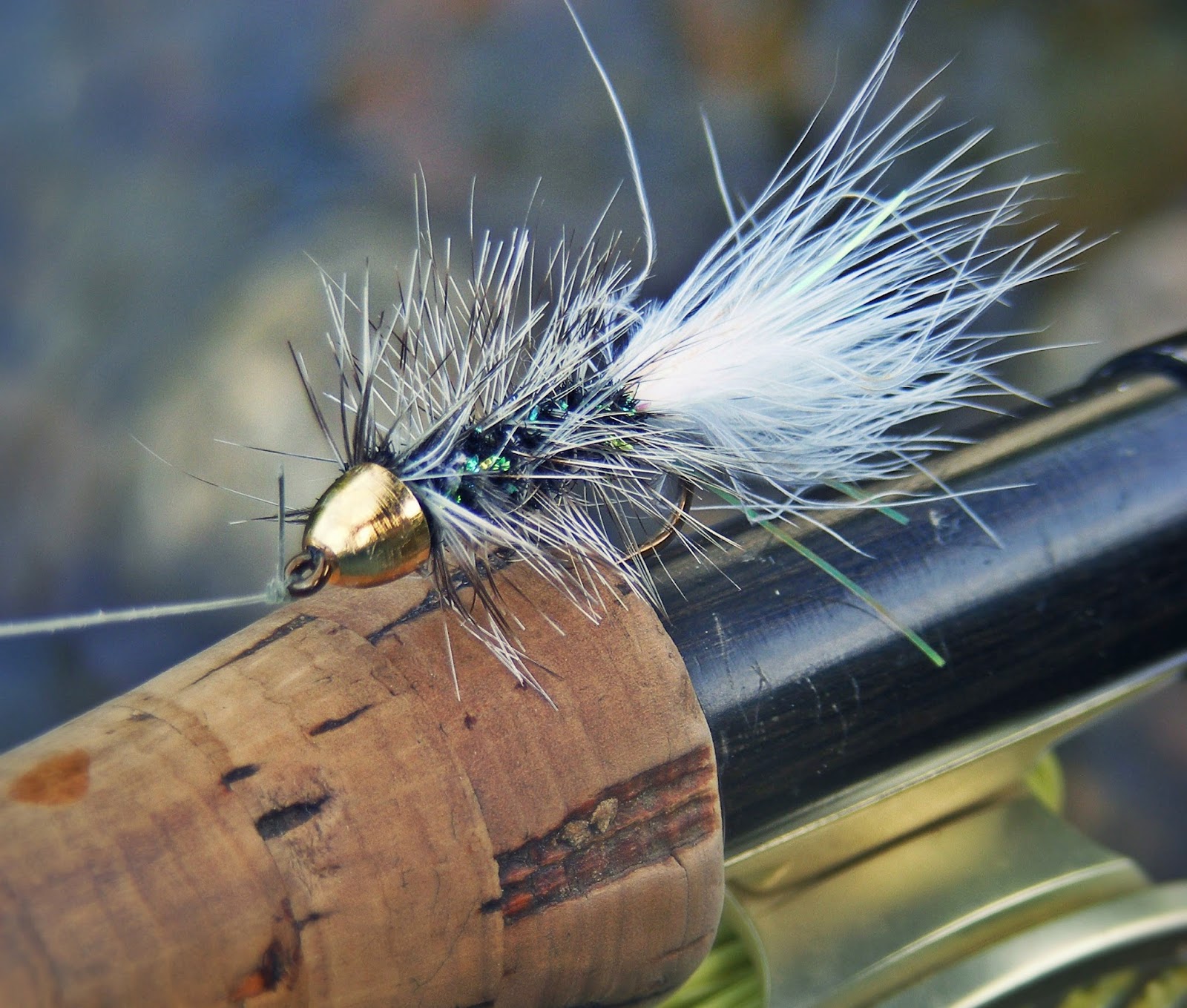 2. The second go-to streamer is for the big browns on the Deerfield. It is used right after a rainstorm or the dam gets released. When the water rises, it’s time to break out the six wt. and throw a heavy fly both you and the fish can see. This is, after all, sight fishing. A gold cone headed black bodied streamer with a white tail and some flashing does the trick. It stands out in the water and those hungry bruisers that cruise around in late October / November will thank you for it. This one ranges from size 10 to 16.