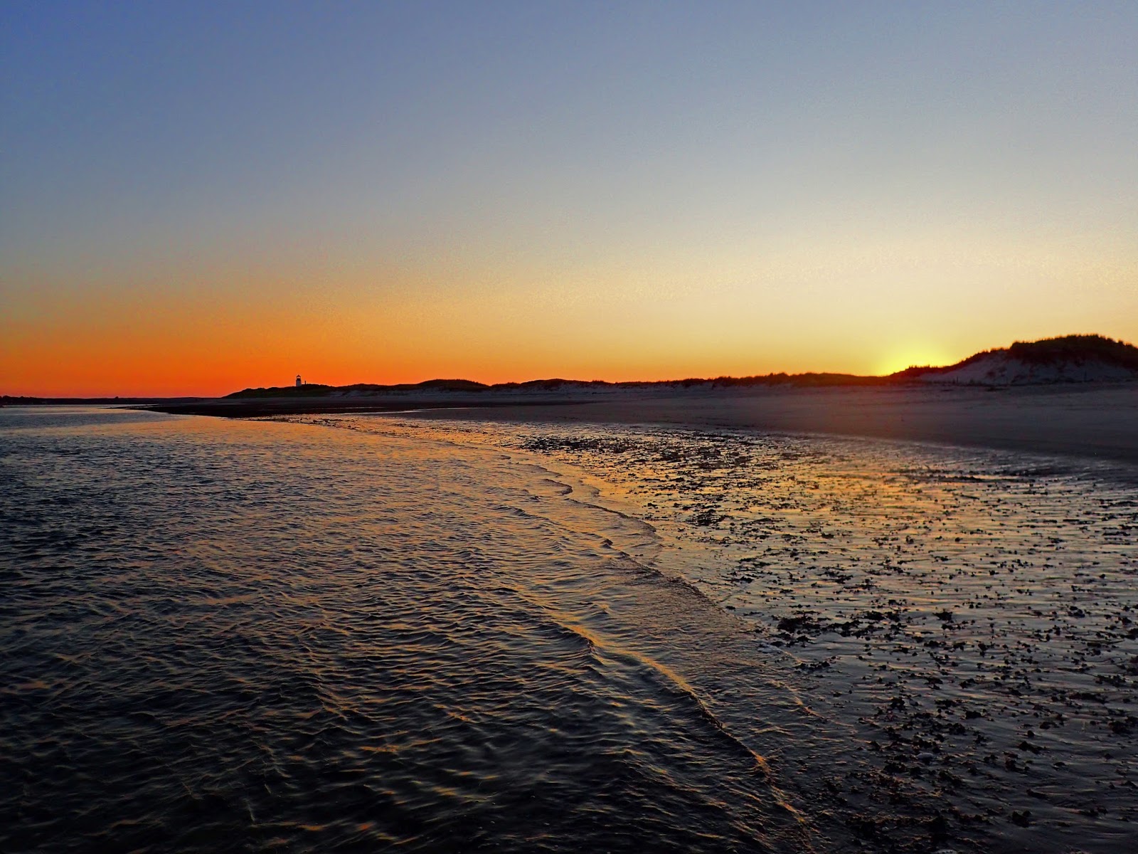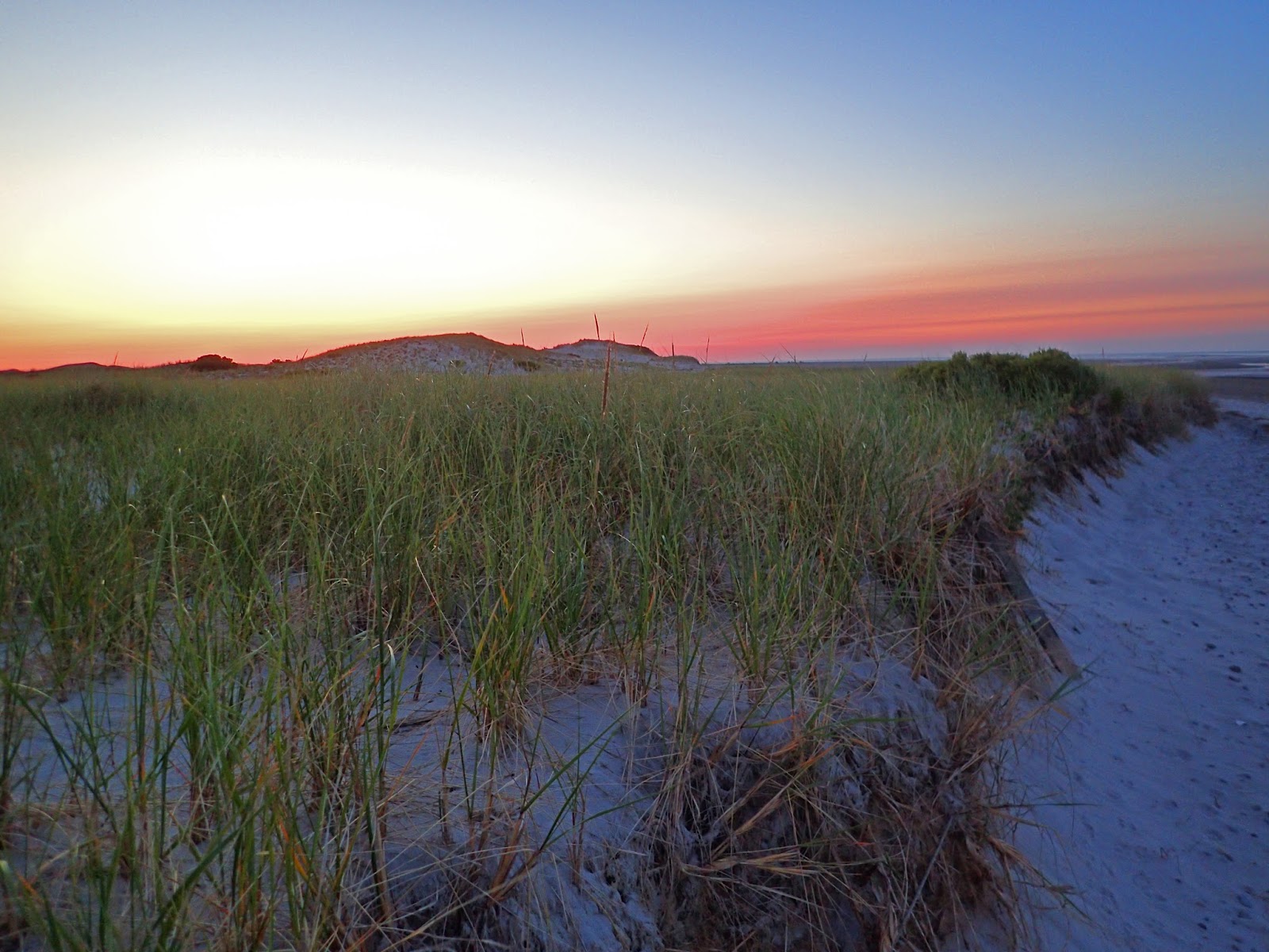 Friday evening/night I wanted to try out Sandy Neck. Unfortunately I didn’t realize that it would be so crowded with cars and campers. I ended up hiking all the way down and around the end of the peninsula – a twelve mile round trip when all was said and done! I probably should’ve thought that one through a bit better. I finally reached the end of Sandy Neck as the tide was draining pretty good. There were a few decent current troughs, eddies, and dropoffs where I picked up a half-dozen or so smaller stripers. It was an OK spot but I had previously fished the flats on the other side of the channel into Barnstable Harbor, which I liked a bit better. I did end up seeing a very nice sunset before making the long walk back to my car.