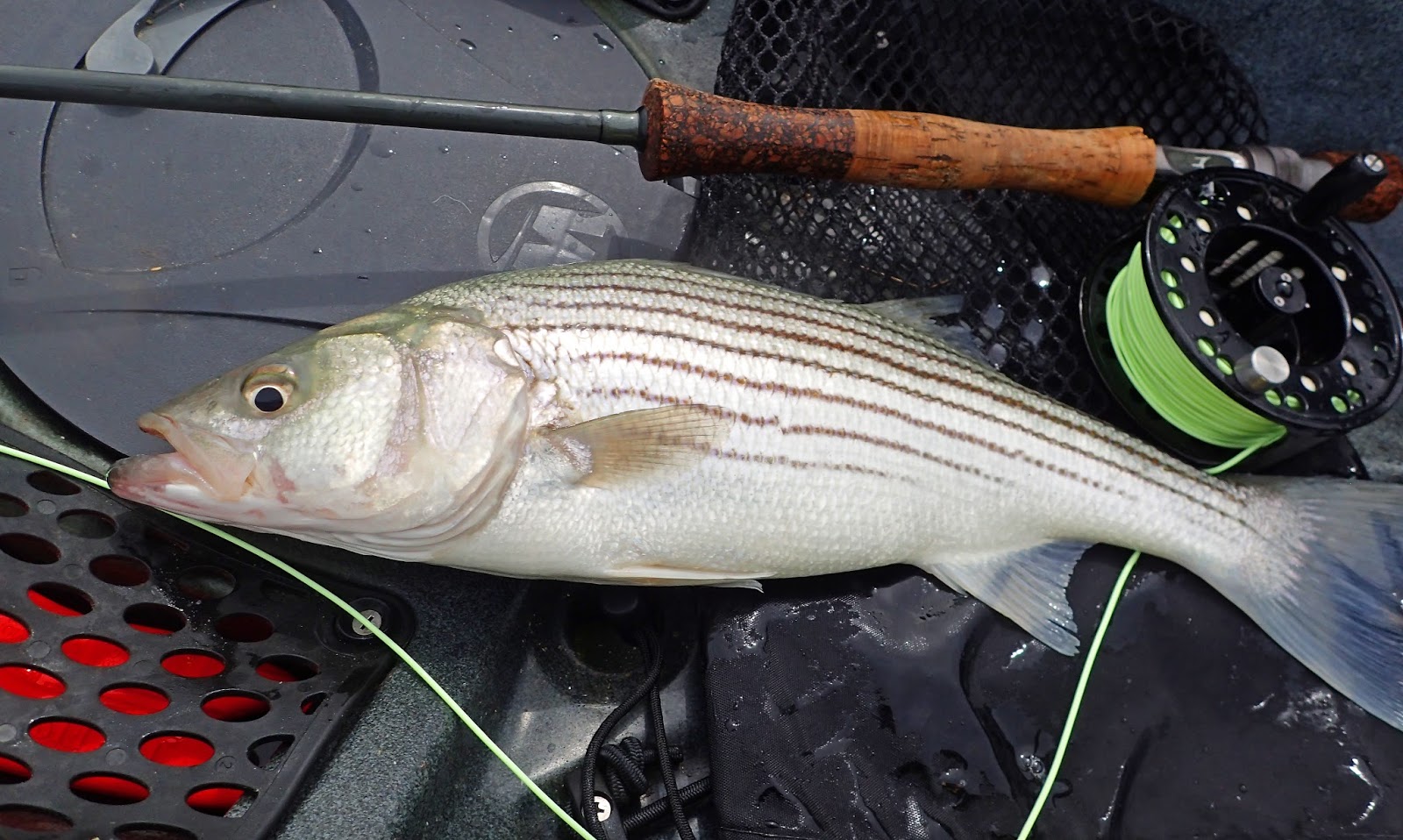 Finally got out after some stripers today. I’ve been wanting to do this the moment I moved to this part of the country. Let me preface by saying that I have very minimal saltwater experience, one afternoon cutting out on a conference and wading for redfish around Jacksonville, FL (got one!) and a combo DIY/guided trip last year to Banana River-Mosquito Lagoon area in east-central FL. That was a great trip. I hooked and landed some real nice redfish and seatrout the two mornings I went out with the guide (by the way if any one is going I have no hesitation recommending Wily Le at Native Fly Charters, great guide, photographer, and a pretty cool dude). I hooked and lost several tarpon while fishing on my own and avoiding alligators in the creeks and marshes in the area.