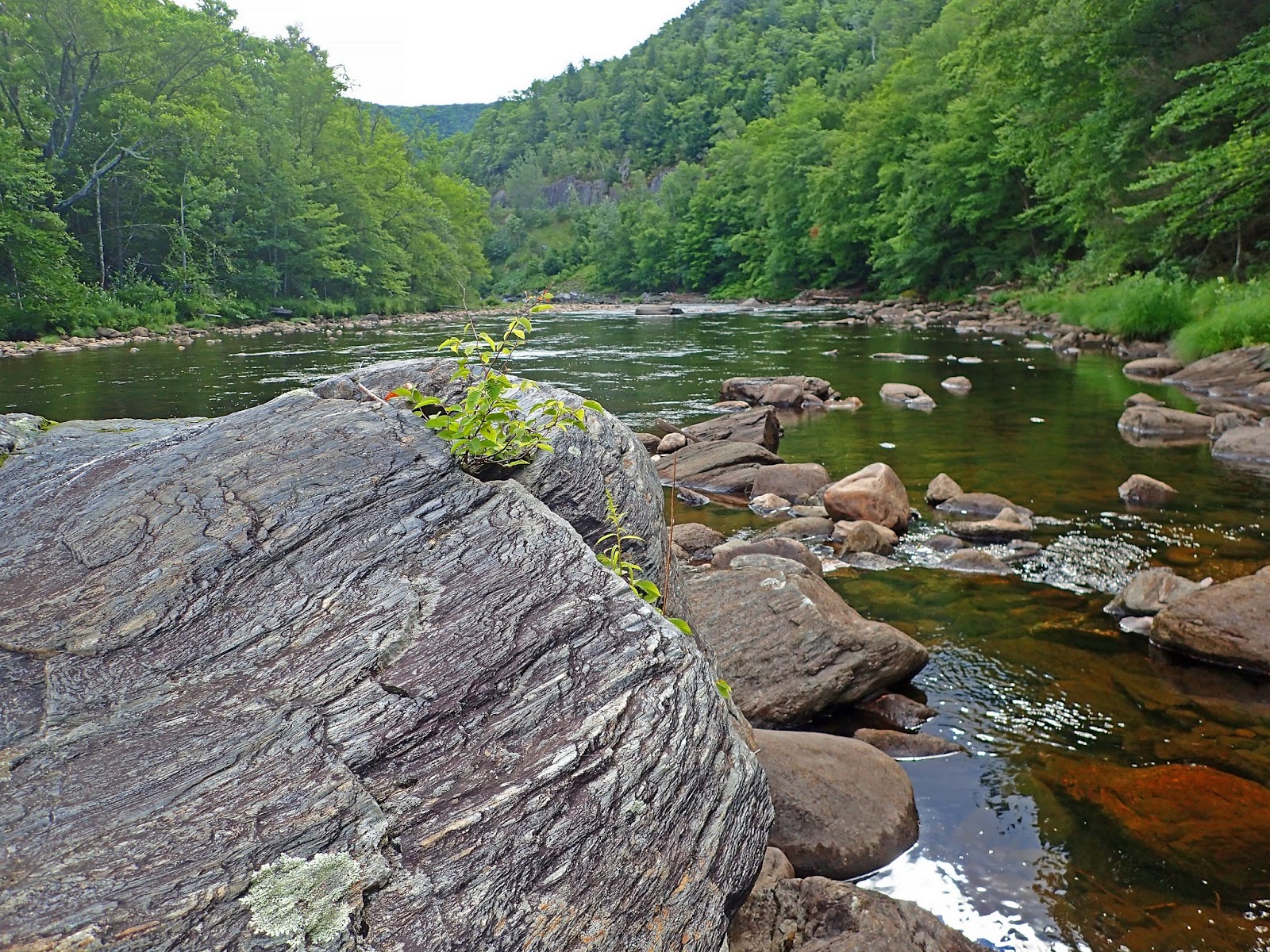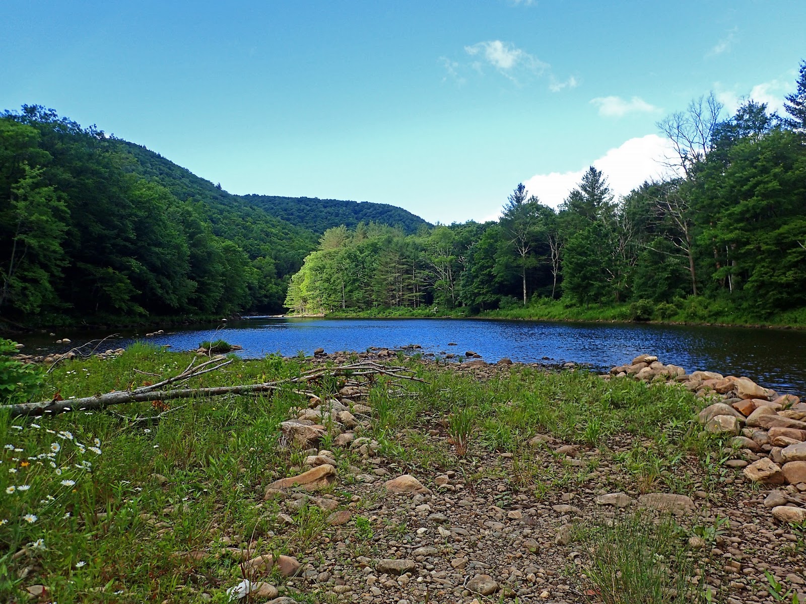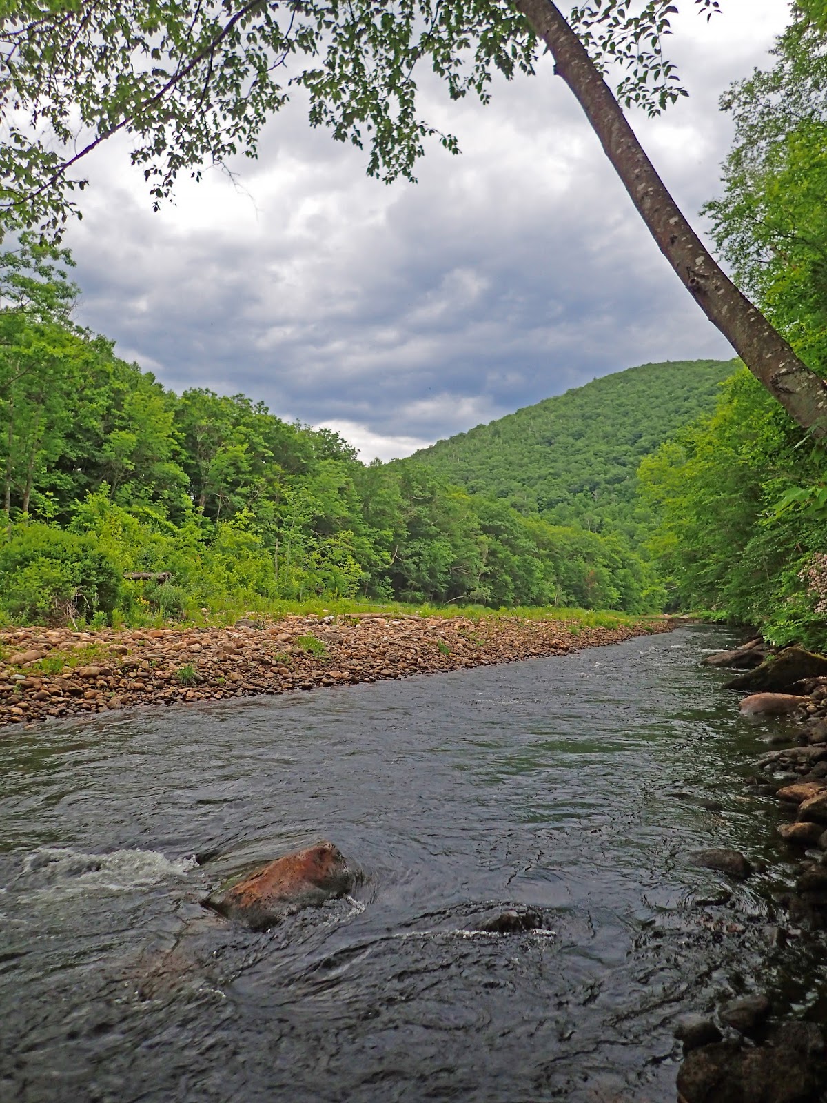 I got to the river early enough Friday to get a few hours of fishing in but I got skunked. My initial impressions were very favorable even with the lack of catching. I think part of it was that the hatch that was supposed to happen never really materialized, at least in the area I fished that evening. I fished to a couple risers in a nice flat below a big pool but they weren’t rising steadily and there were few bugs in the air so it was tough. Being the holiday weekend all of the campsites I had checked on were booked up and it seems that camping outside of designated campgrounds is frowned upon here in the East. So that night I drove into North Adams and went with the old standby of sleeping in my car in the Wal-Mart parking lot. For those of you that don’t know, Wal-Mart, while not necessarily encouraging overnight car camping, at least tend to look the other way. I’ve slept in Wal-Mart parking lots all over the country on fishing and hunting trips. It’s free and convenient and almost every small town has one. Don’t get me started on the demise of local businesses because of Wal-Mart but this is one thing I like about the store!