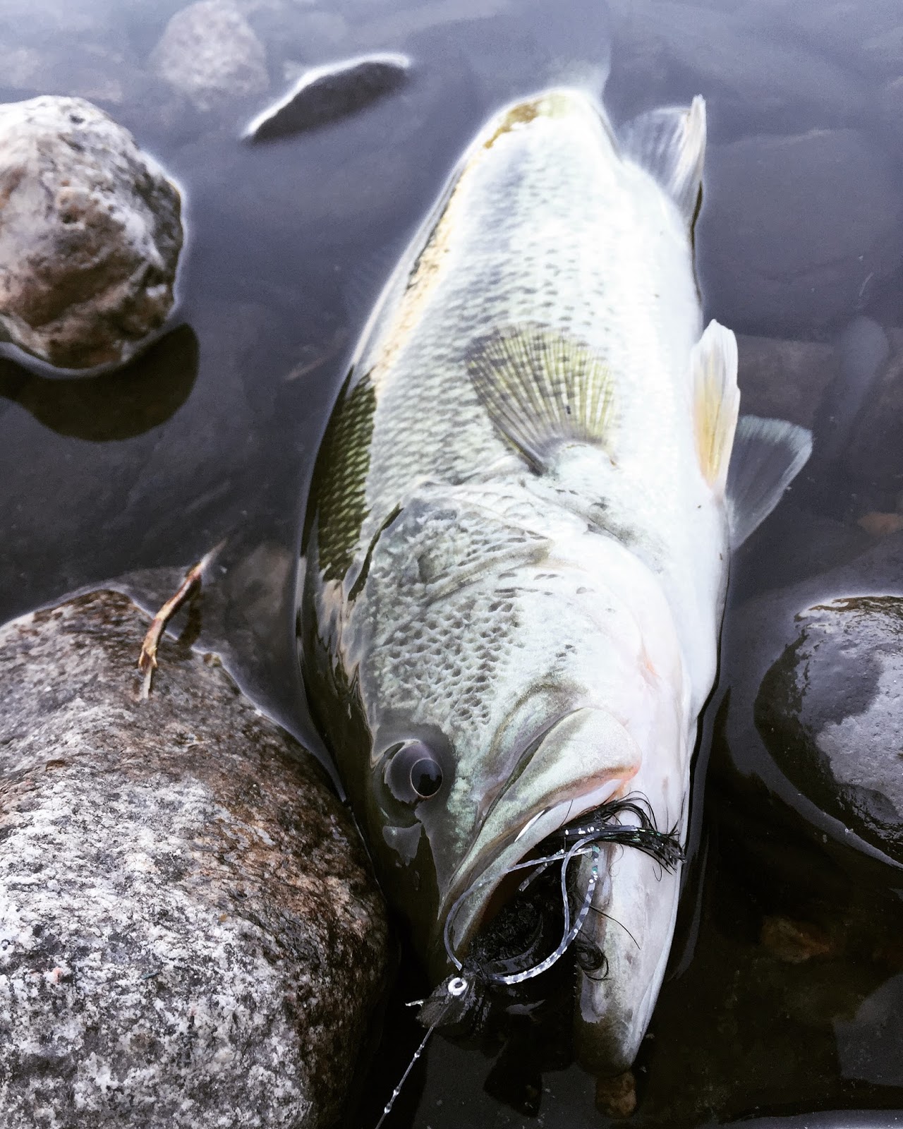 I finished the day off by hooking up to a nice largemouth of about 20” that I had spotted earlier in the day, hanging about near a submerged log near the shore. It was clearly a male on a nest, with a bigger female hanging around nearby. I missed the strike once when it hit a heavy crayfish pattern, however a change of fly and few casts later and everything came tight. The grip ‘n’ grin wasn’t to be though, as just as I was about to slip the net under the fish, it jumped one last time and shook the hook.