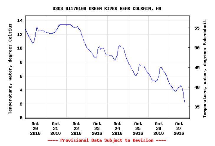 Well, we are sliding to the heart of autumn. The daylight period is shrinking, and the water temps are declining. See below for the temps. for the Green River.
