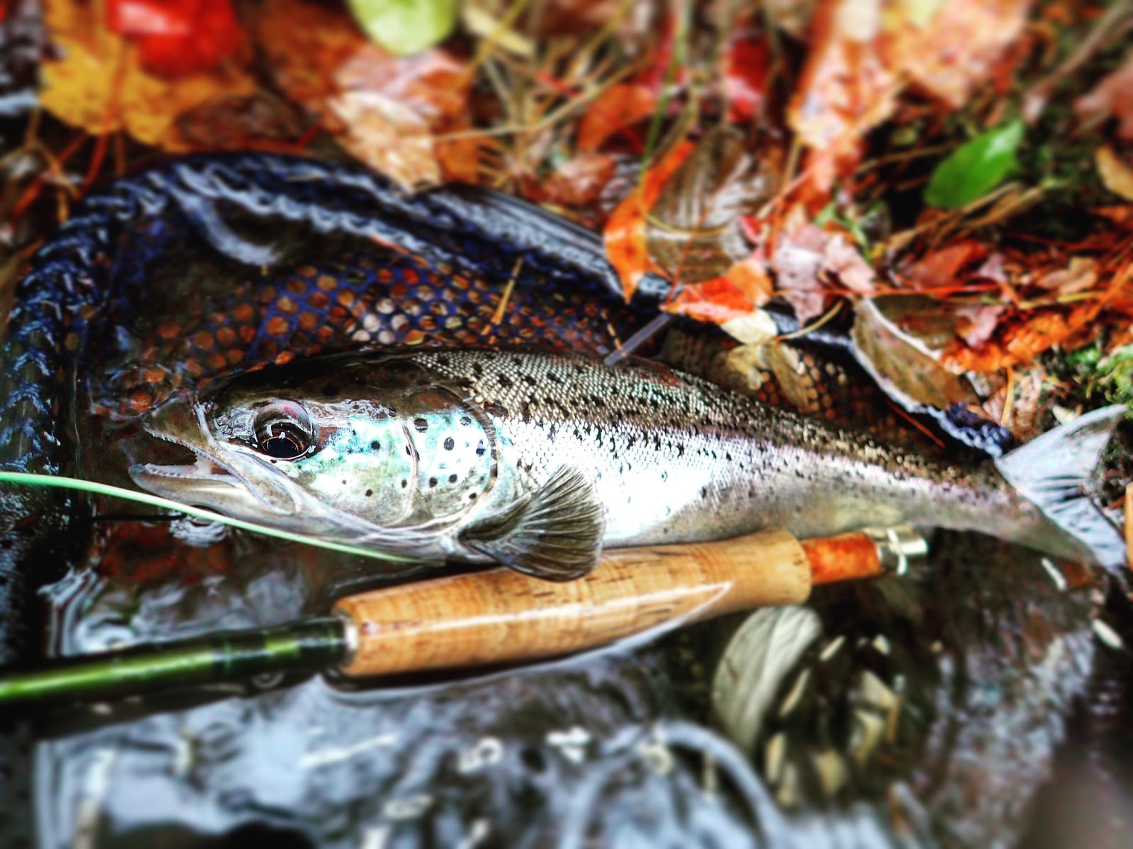 With all of the rain in central Mass I thought it would be a good idea to check out the Stillwater River in the hopes that the run of Landlocked Atlantic Salmon would be getting started. From what I’ve heard and read it seems like the fall rains tend to get the salmon running upstream – I guess that’s not really news considering most lake-run or anadromous fish cue on flow to find and ascend spawning tributaries. I had also heard however that these landlocked salmon tend to just trickle in during the first couple good rain events and the main run doesn’t get started until later in November, or after several good rains. I’m not sure as I’ve never fished for these guys before. I’ll be learning as I go.