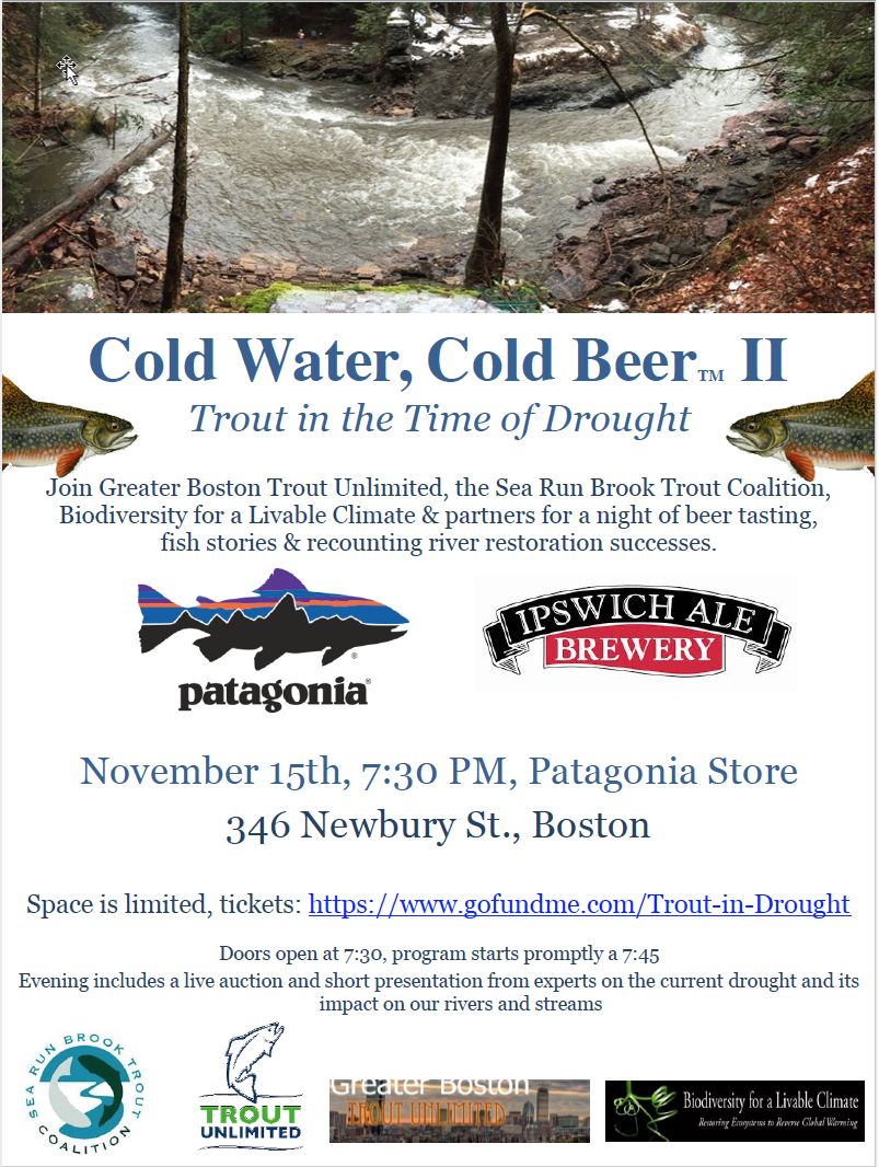 2. A TU sponsored event designed to discuss the effects of the current drought on trout and streams in Massachusetts. I believe you need a ticket for this. The details can be found on the flyer.