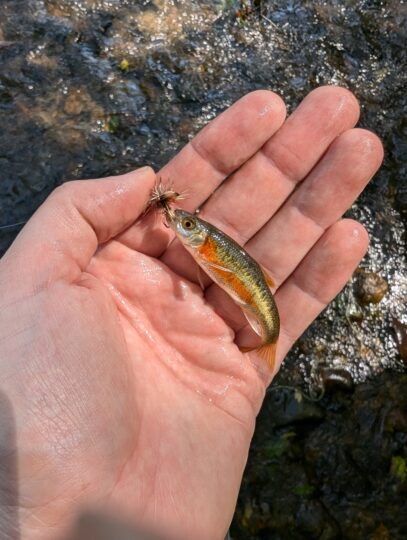 I worked my way back upstream and hit some pockets with a Griffith’s Gnat. Only to be rewarded with both a small little parr of a brookie and another minnow species (likely a black dace) on the walk out. I finished the outing with a beer and BBQ at a brewery not too far down the way. Not a terrible way to spend a day out in celebration of another revolution round the sun.
