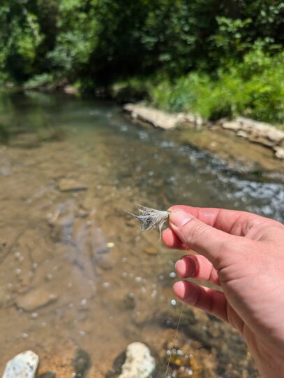I stopped for a drink of water and sat and watched the stream bed. Snails, minnows, sculpin, and crayfish. So I switched tack and put on a Moto’s Minnow in white and brown. This unassuming little (well, not that little relatively speaking, but little for a “streamer”) has been an absolute confidence fly for me. And a perfect generic pattern that could be sculpin, crayfish, or minnow all at once depending on how you fished it.